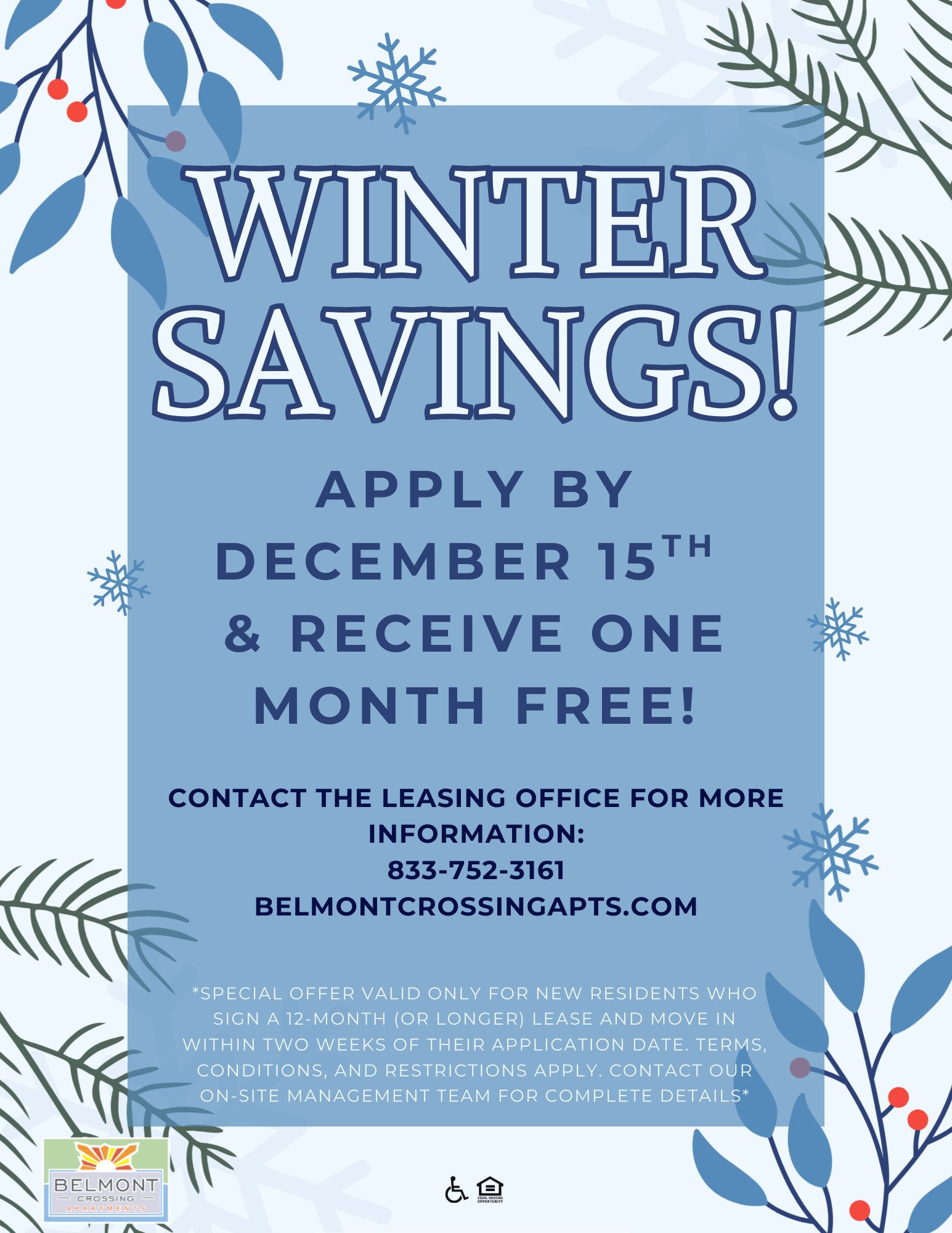 Apply by December 15th & receive one month free on 12+ month leases! Contact the Leasing Office for more information!⤵️ ¡Solicita antes del 15 de diciembre y recibe un mes gratis en contratos de arrendamiento de más de 12 meses! ¡Contacta con la oficina de arrendamiento para más información!⤵️